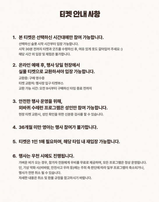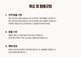 - 이후에는 환불 및 취소가 불가하오니, 일정을 꼭 확인해 주세요.