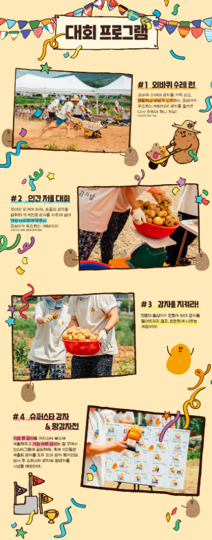 - 참가자 전원에게 감자축제 티셔츠, 고쟁이 바지,목장갑이 제공됩니다.
